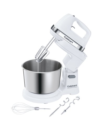 Mixing power and versatility, the Cuisinart® Power Advantage¿ Hand/Stand Mixer features a mountable 7-speed hand mixer and 3.5 quart stainless bowl. The hand mixer is easy to control and operate, and dramatically improves any kitchen's capabilities when mounted on the sturdy mixing stand. The beaters make the bowl spin to ensure all ingredients are evenly incorporated. By hand or on the stand, it's the perfect mix!