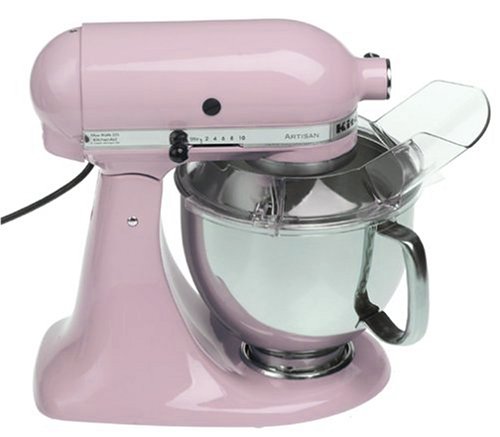 In support of a cure for breast cancer, pink is a wonderful color for the celebrity appliance in your kitchen! When you purchase this great appliance, KitchenAid will donate fifty dollars to The Susan G. Komen Breast Cancer Foundation. Cook for the Cure! More is more sometimes, at least in the world of small appliances. and such is the case with the KitchenAid Artisan mixer. It has a tilting head, like the KSM90, but it has a larger 5 qt. capacity bowl. It also gives you more oomph, as in 325 watts of cookie dough busting power. What's not to love? If you've been considering a stand mixer, this may be the perfect "starter model" for you.