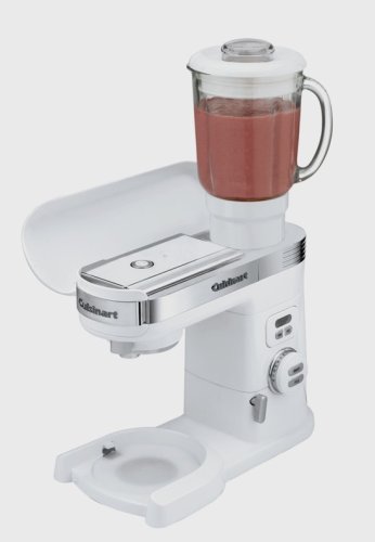 The Cuisinart stand Mixer becomes even more versatile with the 40-once glass Blender Attachment. Connect this full size blender to the high-speed power outlet on any Cuisinart Stand Mixer to whip up big batches of fresh smoothies, creamy milkshakes, frozen drinks or an endless variety of dips, sauces and batters. Cuisinart makes it all easy.