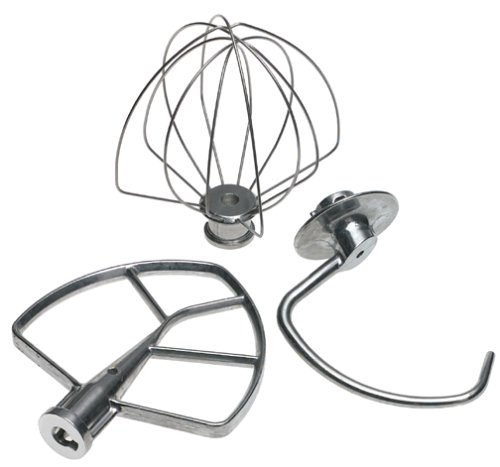- Includes burnished flat beater, burnished dough hook, and wire whip